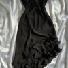 Black Vintage Spaghetti Straps Chiffon Appliques Flower Prom Dress