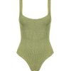 Square Neck Metallic Crinkle Swimsuit